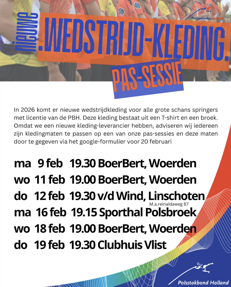 Omdat we een nieuwe kledingleverancier hebben, adviseren wij iedereen