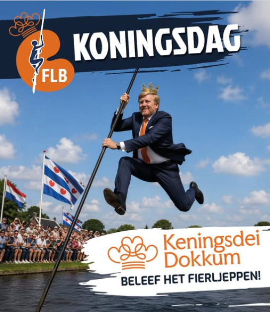 Met trots mogen wij tijdens Keningsdei Dokkum het fierljeppen laten zien! De spectaculaire Friese sport kun je van dichtbij beleven langs de koninklijke route.